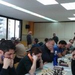 Habían cuatros partidas en juego y necesitábamos un punto. Confiábamos en el punto de Francesc que tenía un final de torre con peón de ventaja, pero que cada jugada que hacía veíamos la posición menos clara. Mientras Esteve acababa perdiendo el final de torre con dos peones por lado contra el experimentado rival. 2.5-4.5. Lástima porque Esteve había jugado una partida muy sería y el final que llegaba eran tablas, pero no jugo las jugadas precisas.