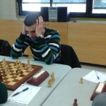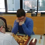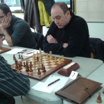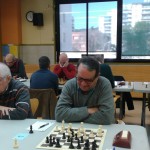 Nunca llegaba la victoria de Francesc pero Bernabé que vino a jugar con fiebre se anotó el punto, después que su rival se despistará y se dejará clavada una pieza en el final de torre y caballo con peones por ambos lados. 2.5-5.5.