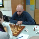 Empezaban las partidas, Omar que parecía que no había dormido mucho no le fallaba la concentración, jugaba contra Joana, una niña con un futuro más que prometedor en el ajedrez, pero la pequeña en la apertura se equivocó y perdió una pieza que más tarde le daría la victoria a Omar 1-0. Poco después perdería Carlos, después de liarse en la apertura con una variante de la francesa que no había visto nunca, esto le dejo con desventaja y no pudo hacer más 1-1. El resto de partidas aún se estaban jugando.