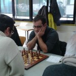 Neus con un rival bastante más fuerte que ella, conseguía hacer una partida seria, donde su rival tuvo que esforzarse más de lo que esperaban sus compañeros, lástima que en un desafortunado cambio de piezas queda en una peor posición y esto le lleva a la derrota 1-2. Agustín con una muy buena partida conseguía unas tablas en el primer tablero 1.5-2.5, vamos perdiendo pero nos quedan dos partidas y mientras haya tiempo y partidas todo puede pasar.